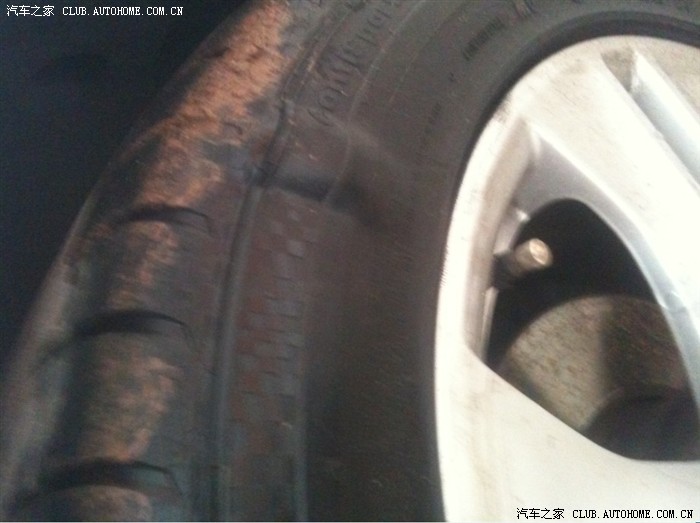 发一张轮胎起泡的图,给大家做个提醒,过坑的时候要留意!