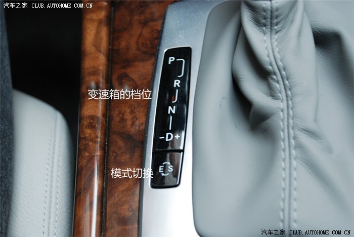 档位没什么特别的,总体来说手感还不错,很扎实,很运动,特别说下模式的切换,可以在行驶中进行切换,E为舒适模式,S为运动模式,默认E模式,切换成S后,悬挂变硬,方向盘加重,换挡变慢,也就是转速拉高,我时常用S模式玩地板油,很刺激,像坐飞机,顺便说下,E200积碳的情况比较普遍,建议大家时常用下S模式!