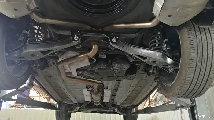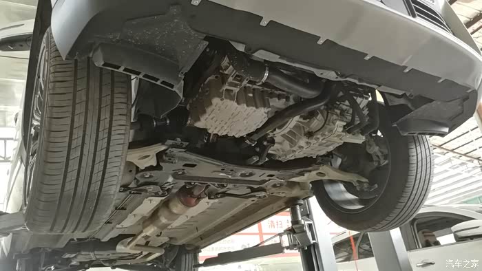 车子升起后可以清楚看到发动机及底盘