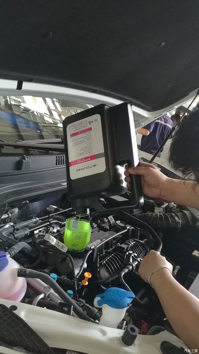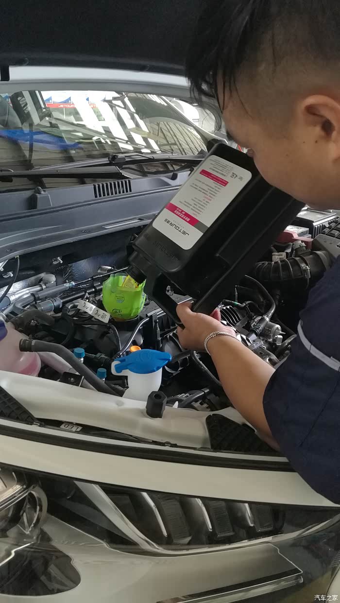 加入新机油,标注捷途专用,首保我还是更换的矿物机油,5000公里或六个月更换,让车子继续磨合一段时间,待二保时再考虑更换全合成。