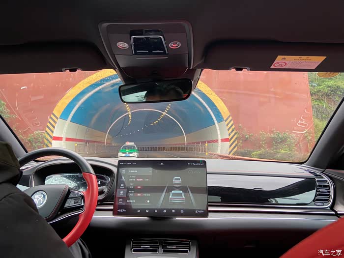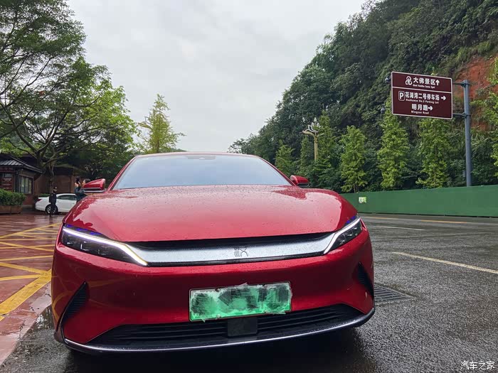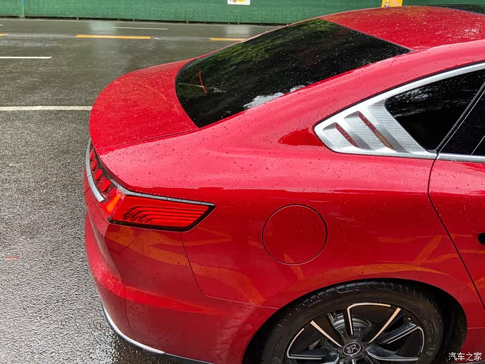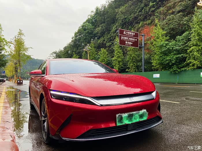 比亚迪家族式的Dragon Face设计,深得我心。低趴的车身,有点轿跑那味道了。而且0.233cd的风阻系数比同级对手小鹏P7还低,跑高速时风噪还挺小的。