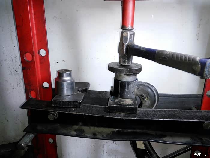可以说这个活不是太好干,就是砸胶套,和师傅聊了聊是不是有什么专用的工具,师傅说工具有但是没有好用的,在加上换胶套的车少,很少用,还是用大锤方便,2锤搞定。