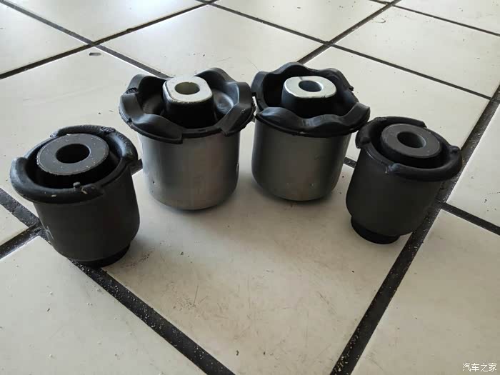 拆下来的下支臂,保养件,还有新的胶套。