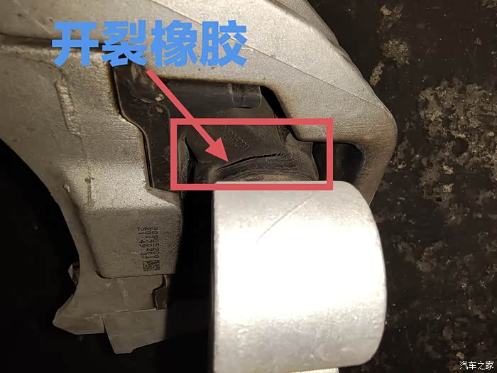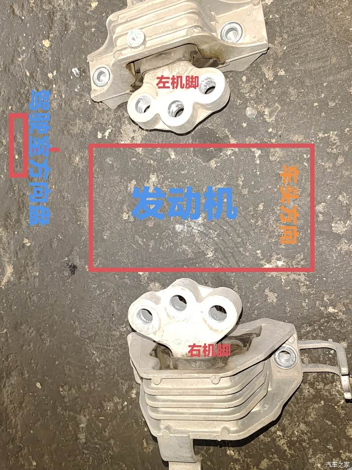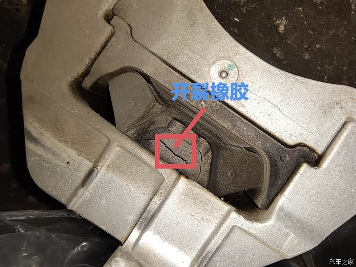 原因:发动机左右机脚橡胶老化,拆下来发现橡胶有明显开裂(未全断)
