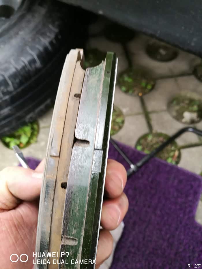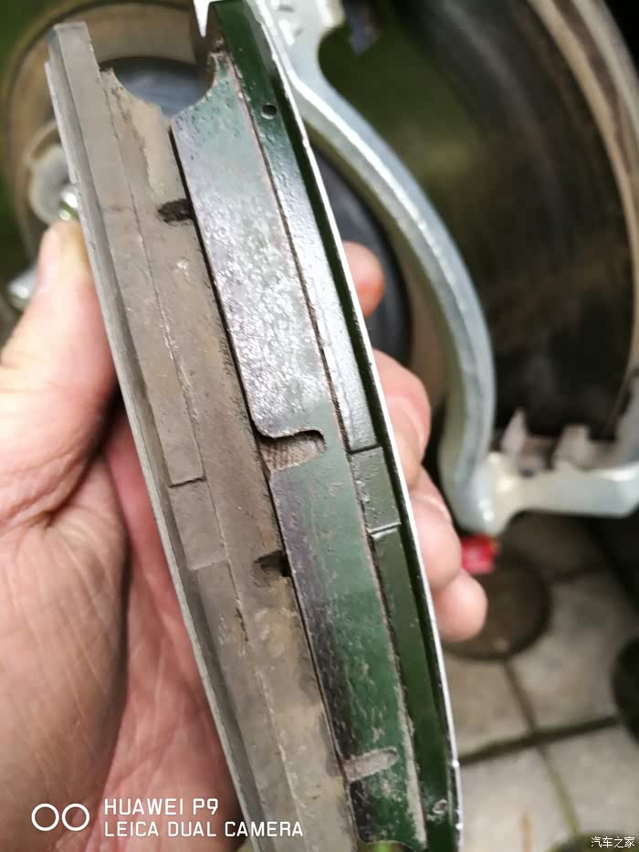旧刹车片和新刹车片厚度对比
