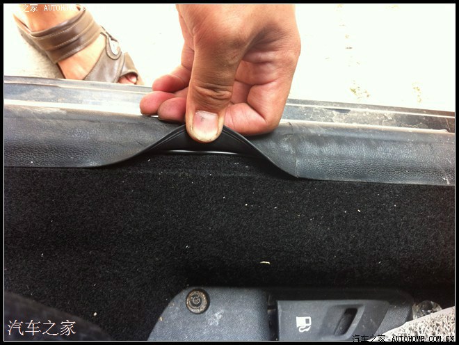 打开方向盘下面的面板,把线放进去,里面是空的,所有可以放到中控导航那里。然后如图把线走在门边的密封条上