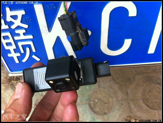 布线的对插接头上还两跟小线,是接倒车灯的,预留出来,接在倒车灯上,倒车灯是插头的最外面两根,粉红的是正极,也可以用电笔测一下。这里一不用破原车的线,如我下图,只需把线插在原车的接头上,注意要固定好就OK了
