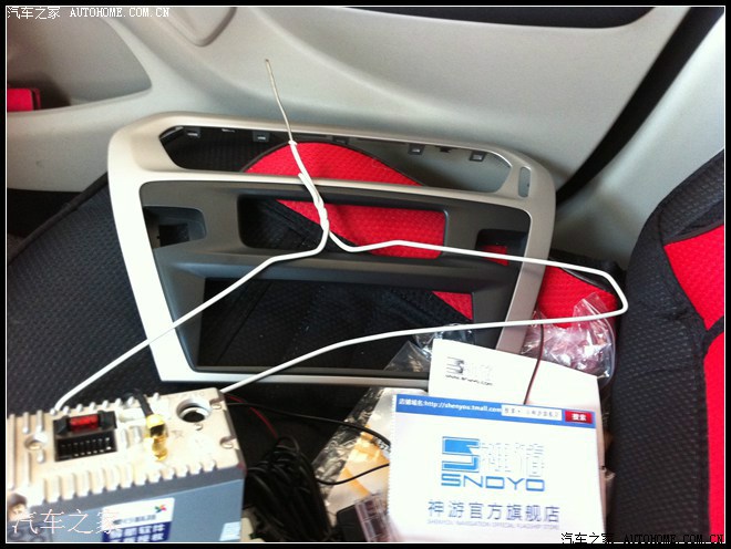 拆下来的原车中控面板(请忽悠那个衣架,哈哈。他可以退休了)