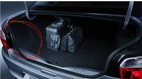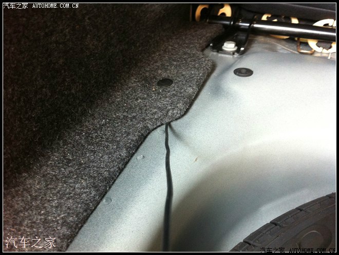 这下可以放进去了,摄像头预留的线足够长的话,可以放到后备箱里头去,没那么才就塞进去放到地方等一下再接,