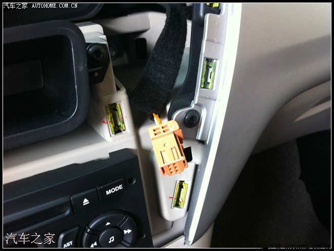 神器出现,买的导航,这种是带和原车贴合的面板的,所有只需把中控锁、双闪灯、空调出风口开关拿下来安在这上面就可以了(这个很简单,黑色的面板感觉挺好看的)。导航配件里有一条线,都是对接的,一头和原车收音机对插,,一头插导航。(这也导航都配有的,插头都是对接的,很容易)