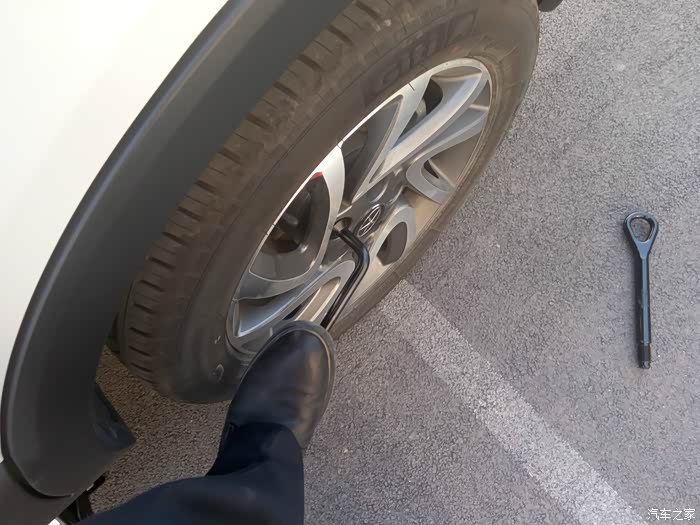 对就是拿脚踹,特省气。螺丝全部松动就好,记住松动就好别把螺丝卸下来!拿出千斤顶把车子顶起后才能拆掉螺丝