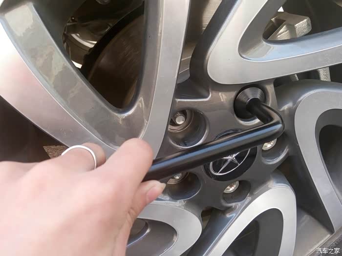卸下帽卡后拿出轮胎扳手,这里有几个技巧,那就是轮胎螺丝的装卸方式有一个顺口溜“左正右反,前紧后松”。还有一个技巧,在卸螺丝时会觉得螺丝特别紧不好拆卸那么办法来了请看下图