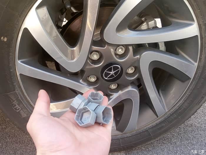现在就是用帽卡的时候,“三儿”当初设计师怕轮胎螺丝时间长了会锈蚀,并且不好拆卸所以设计了这么一个螺丝套,现在知道帽卡用来做什么了吧?