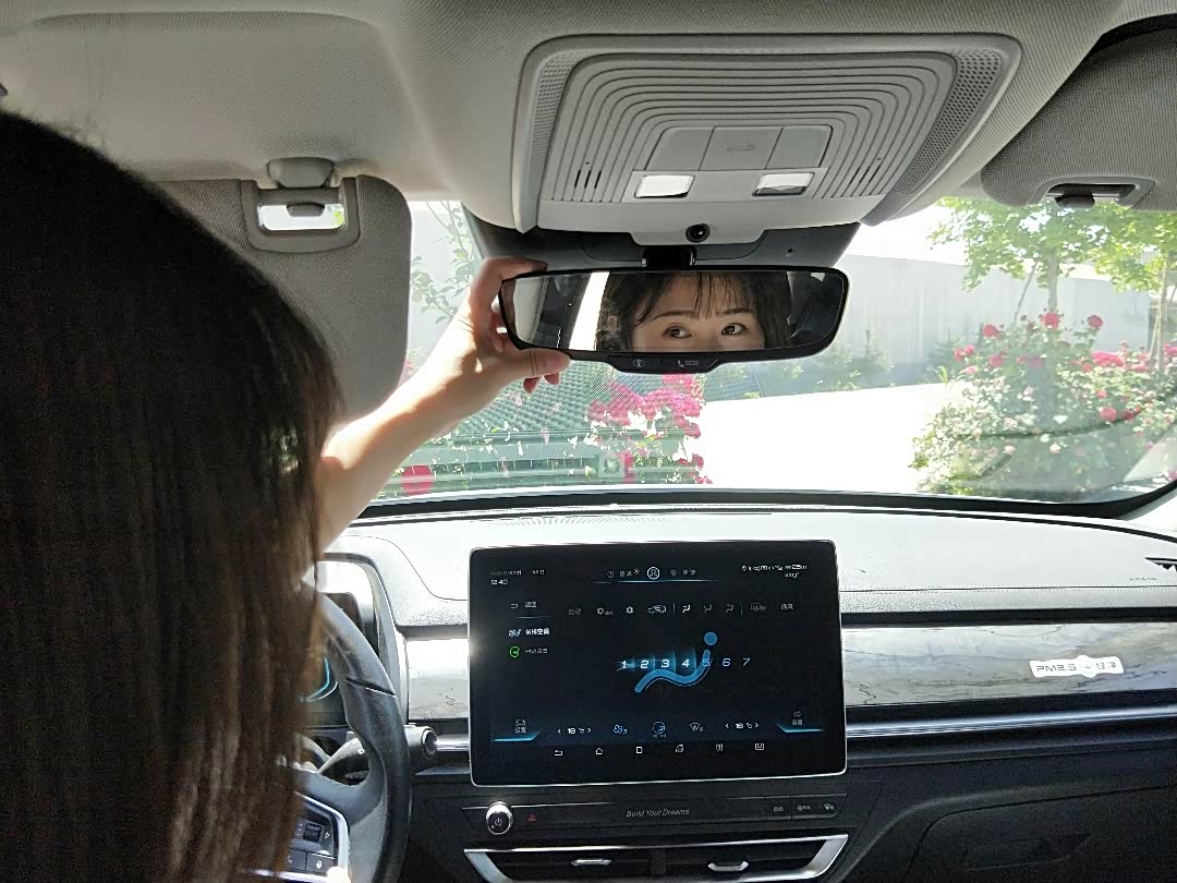 上车先照镜子,女人天性