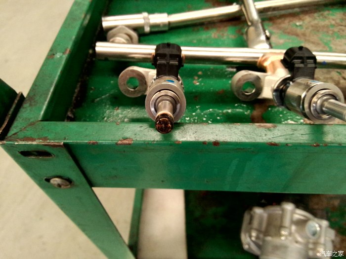 今天开去4S,发动机重新编程,故障灯灭,但加油时不顺畅。机械师建议清洗喷油嘴。拆开喷油嘴,发现油嘴上有积碳。进行喷油嘴清洗,工时费400,两瓶清洗剂30。洗完后加油顺畅点,但试车时只要超过40,抖动仍然明显。机械师换上一个备用点火线圈,再试车时抖动消失。