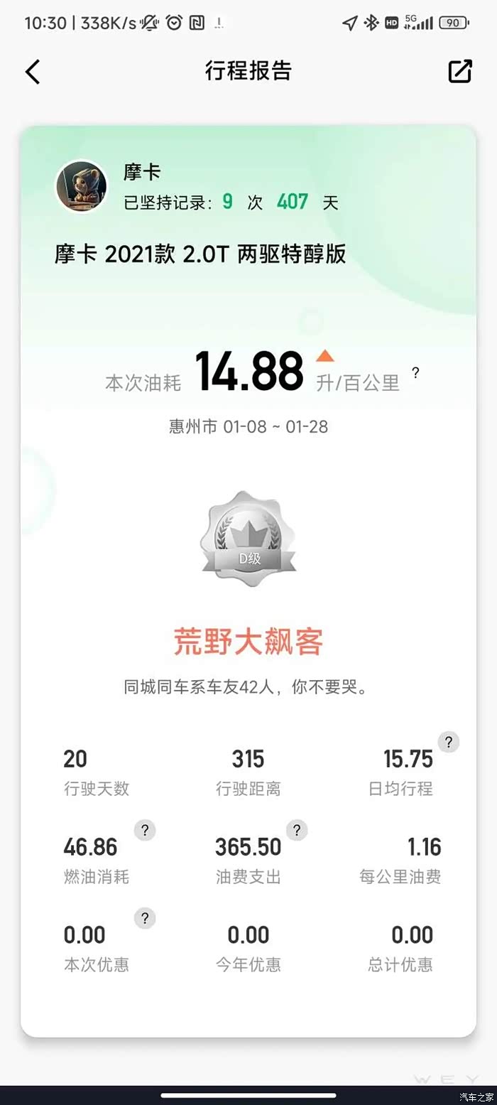 油耗在家里这十几天还是挺意外的,回家前是满油回去的,再到加油剩下23那样,十几天假期其实开车的时间不多,前面又下一个星期的雨,就是家里的路小弯,速度都上不了,基本都是在低速行驶,而且经常要会车剩下23的油APP续航显示160公里,当时城里朋友惊讶的说,你是怎么开车的,这么多油才160其实油耗这个也没什么,我是不在意的,因为平时在城里开都是10个油左右的,在乡下开才14个,也能理解,毕竟那样的路,那样的弯道,平均速度都是在30到40,有的时候更慢