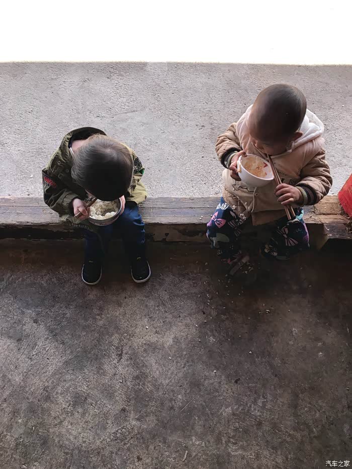 海拔4500米的一个饭店。小女儿在跟他比吃饭谁快!呵呵