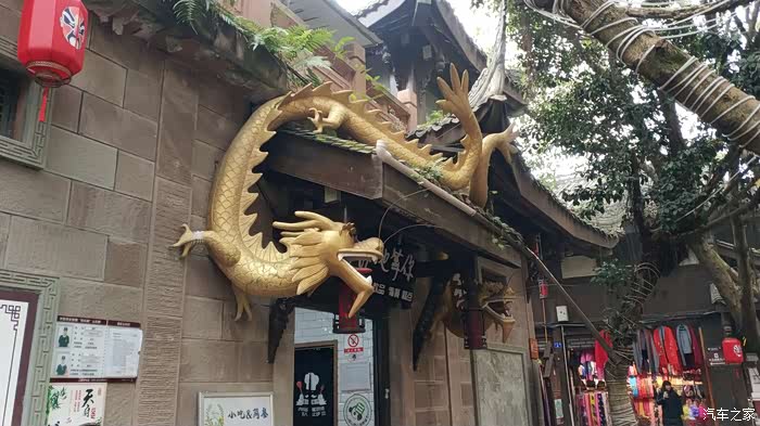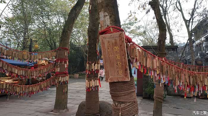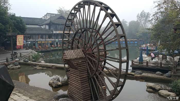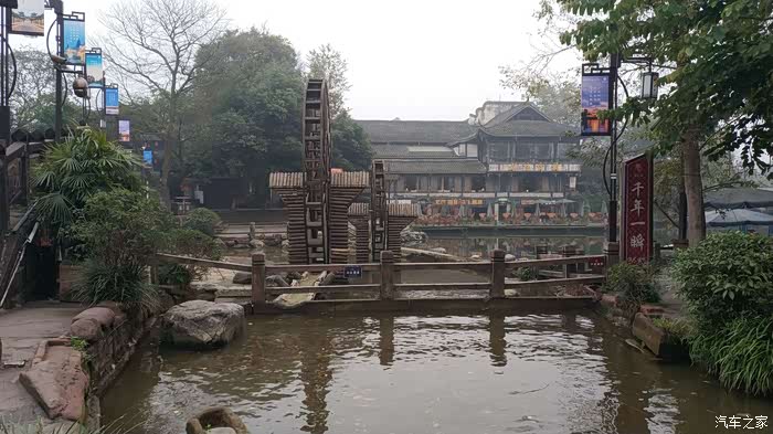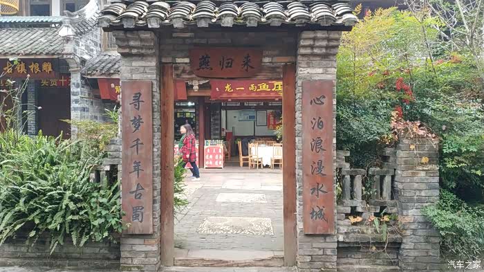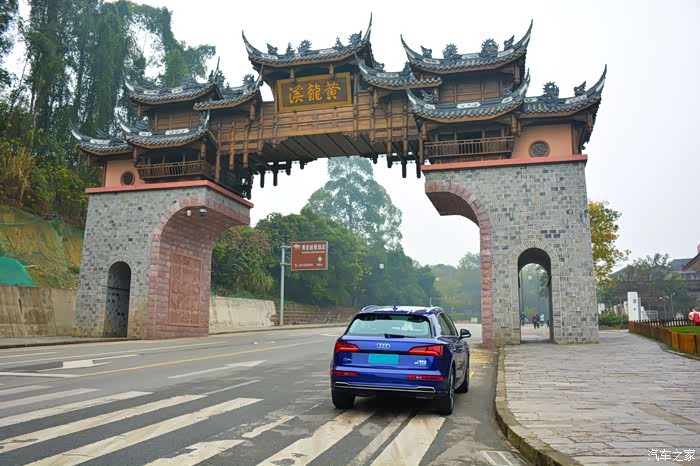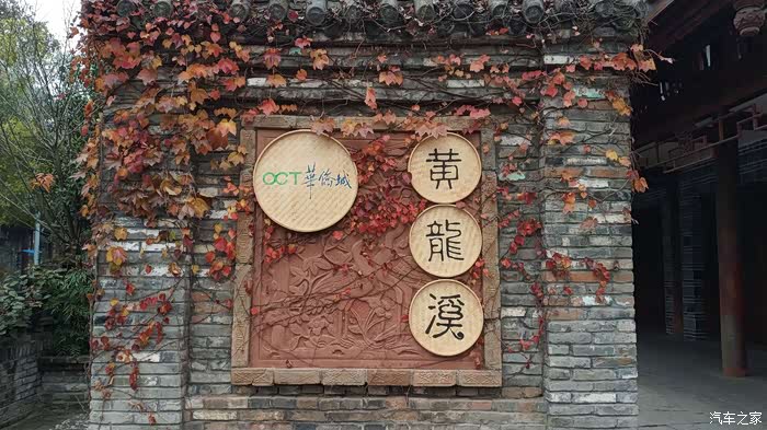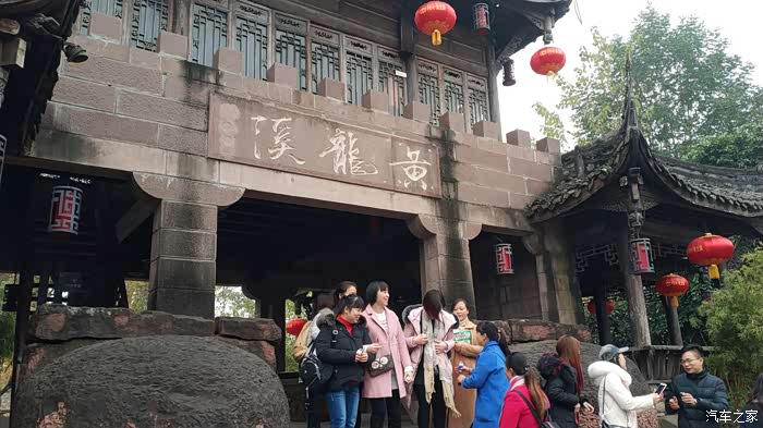 到达黄龙溪,赶紧下车给爱车和景点留个影,这边不能长时间停车的,只能临时停车,还好我们去的时候比较早,车流少,不然还没办法下车拍张照片
