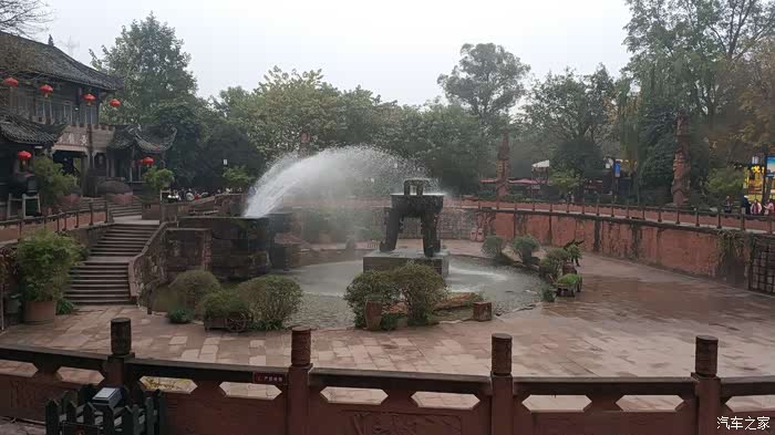 黄龙溪的龙头位置,龙口喷出的水流,延伸到前方的大鼎中