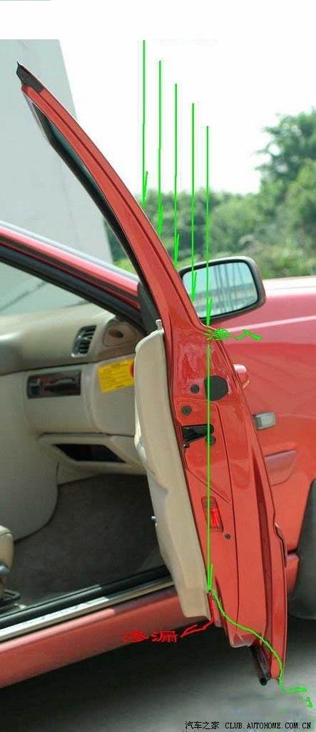 车门漏水的原因我观察(这‘研究’俩字是不敢说的!)过,基本是两个部位、四种情况。是汽车它就是这么设计的,因为这样设计简单、成熟、可靠、低成本! 所以,你还别叫板,别瞧咱没拆过你那‘血泪B柱’,蒙也蒙个差不多(^_^。)! )