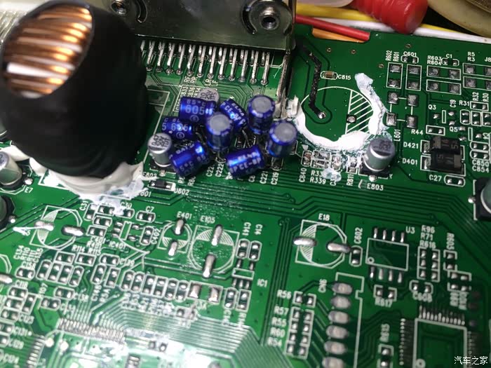 这图是拆下了原机电源滤波电容,已经换上8颗音频耦合电容了(每声道2颗,在第三季有具体分析,这里不详细说明了。)