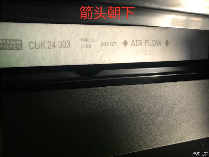 5、新的空调滤芯和原来空调滤芯都是箭头朝下,更换放入即可。
