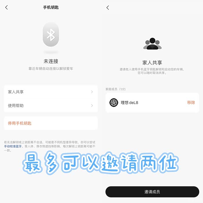 智能时代已经不习惯随身带一些物品,一个手机足以行天下,这个功能就是一家人的方便,进入理想APP-理想汽车-手机钥匙-邀请家人,完成即可共享,最多邀请两人。老婆拿到钥匙很开心😁,适应理想后的她都不想开油车,是不是考虑来个L7女王座驾送她。