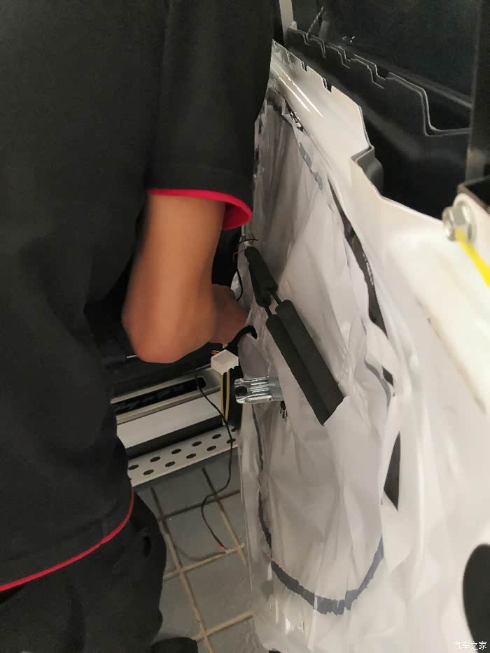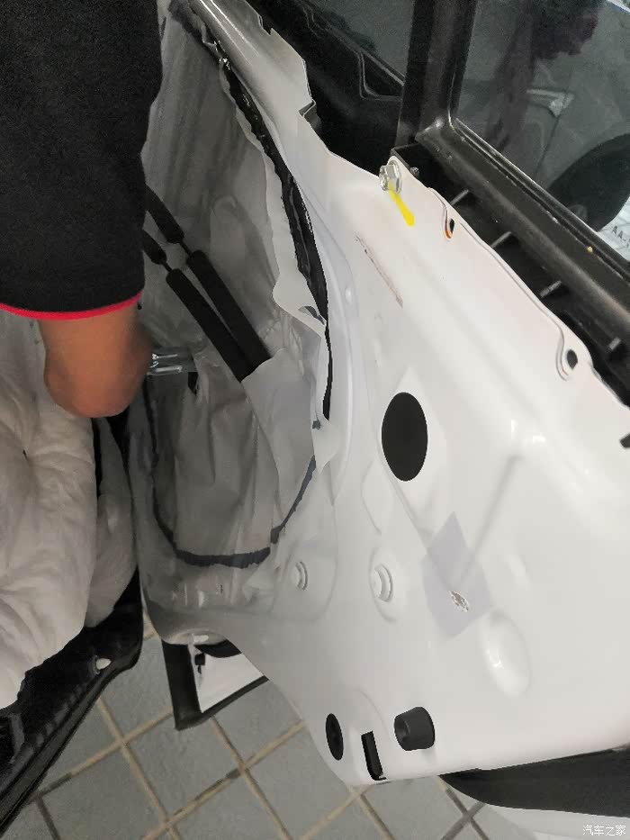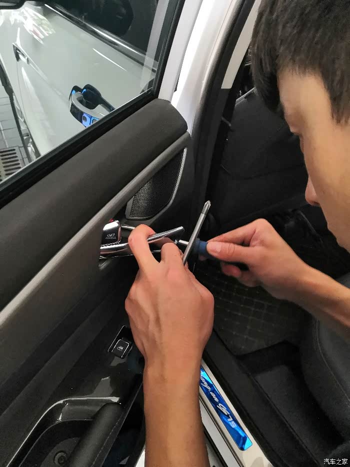 4s店维修师傅小心翼翼的将内部车门拆下。