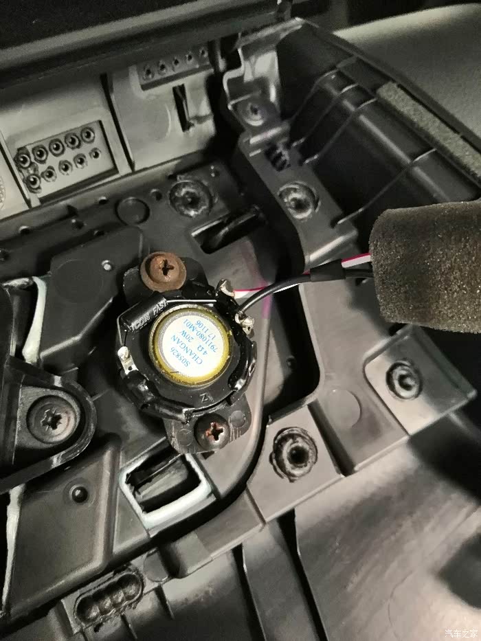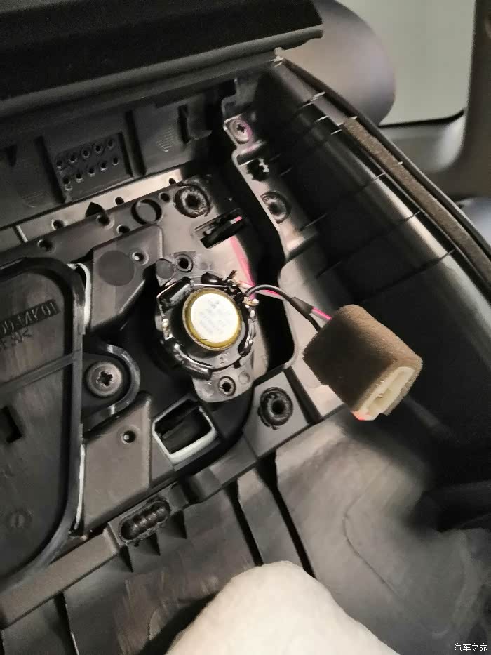 这次加装的位置就是后门这个高音喇叭。外表没有任何区别,只是里面是空的。因为配置不同,不是所有的车都自带。