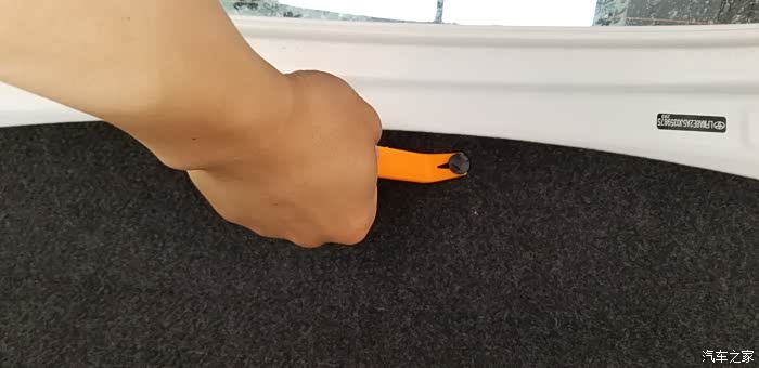 副驾驶a柱拆开装饰板,很好拆,记录仪的线从这里走到前玻璃