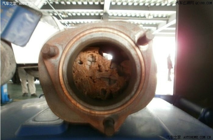 变成蜂窝煤了,据说制造三元催化要几千度,但是发动机的热量就能把他融化!
