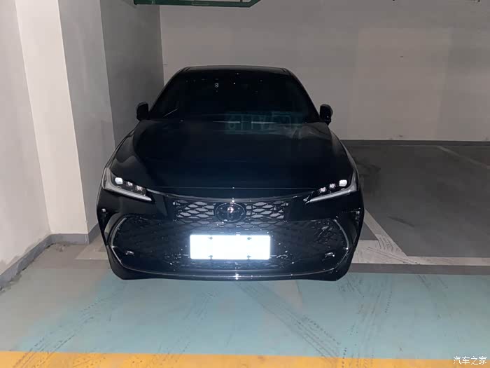 停在地下车库里。车位小,车身长,前轮正好压车位线