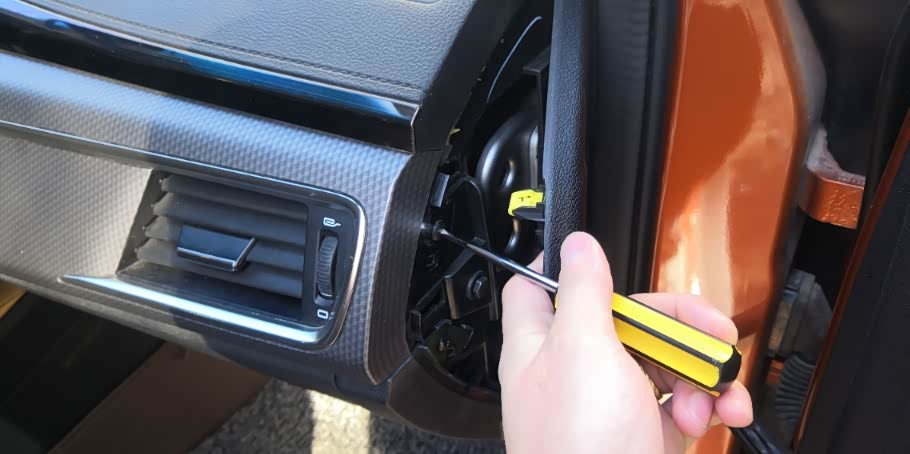 然后撬开一键启动下面的这个塑料板,要用力,不用怕,原厂这个塑料韧性挺好
