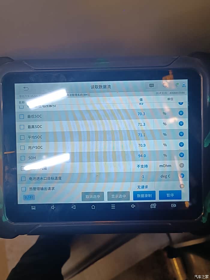 🚘零跑C11五万公里保养项目只包括更换空调滤芯,全车检查,纯电汽车就是这么简单。服务小哥检查完三电及底盘,电池检测后SOH为94%,电池单体压差仅0.001,五万公里保持得相当不错了😍然后添加玻璃水,对后摄像头进行调校,更换雨刮器,最后再蹭一波零跑的免费洗车😋。