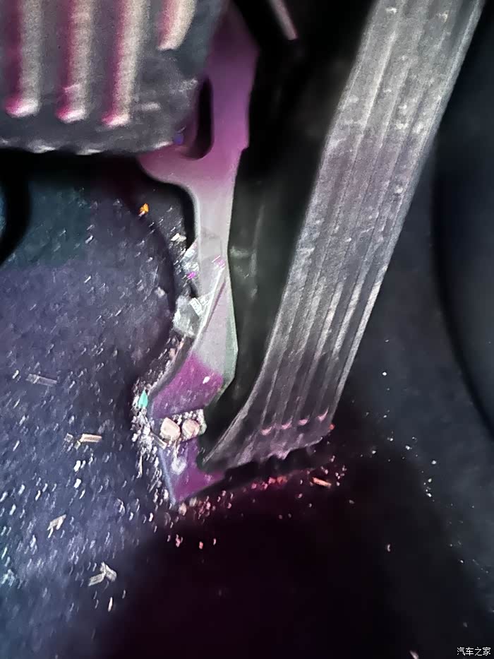 2. 提车当天发现,新车油门踏板,够脏的,验车的时候盖着4s店送的脚垫没发现,由于脚垫味道太大,拿掉脚垫后惊了一身汗,这车是到底经历过啥?