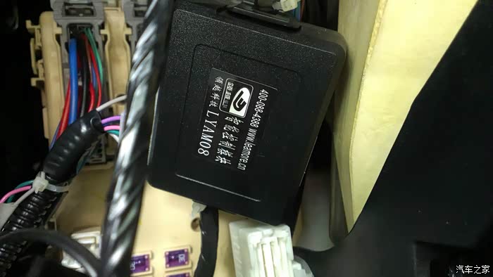由于增加的这个模块,一方面要通过车子的CAN-BUS总线读取锁车信号,又要在锁车后控制反光镜折叠,所以这个东西也是串联在反光镜折叠电机和反光镜开关总成之间的,位置就在方向盘左下角的保险盒盖内。