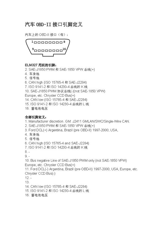 看这个接口的定义,其中4、5、6、14就能形成一个信号回路,由于是通用插座,所以16个脚中许多是其他品牌汽车厂家的接口,跟丰田无关的。