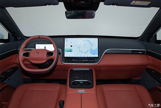 中控的设计完全是立足于新能源的理念,几乎看不到任何的旋钮和按键,取而代之的是一块15.6英寸悬浮式的车机屏幕,加上液晶仪表盘、双幅式平底方向盘,中控台的设计感还是比较不错的。同时,东风eπ008的做工用料也很有诚意,大面积软性材质覆盖搭配木质纹理装饰板,内饰主色调是红\黑色设计,也不失运动气息。车机芯片为高通骁龙8155,预计会有不错的车机反应速度。