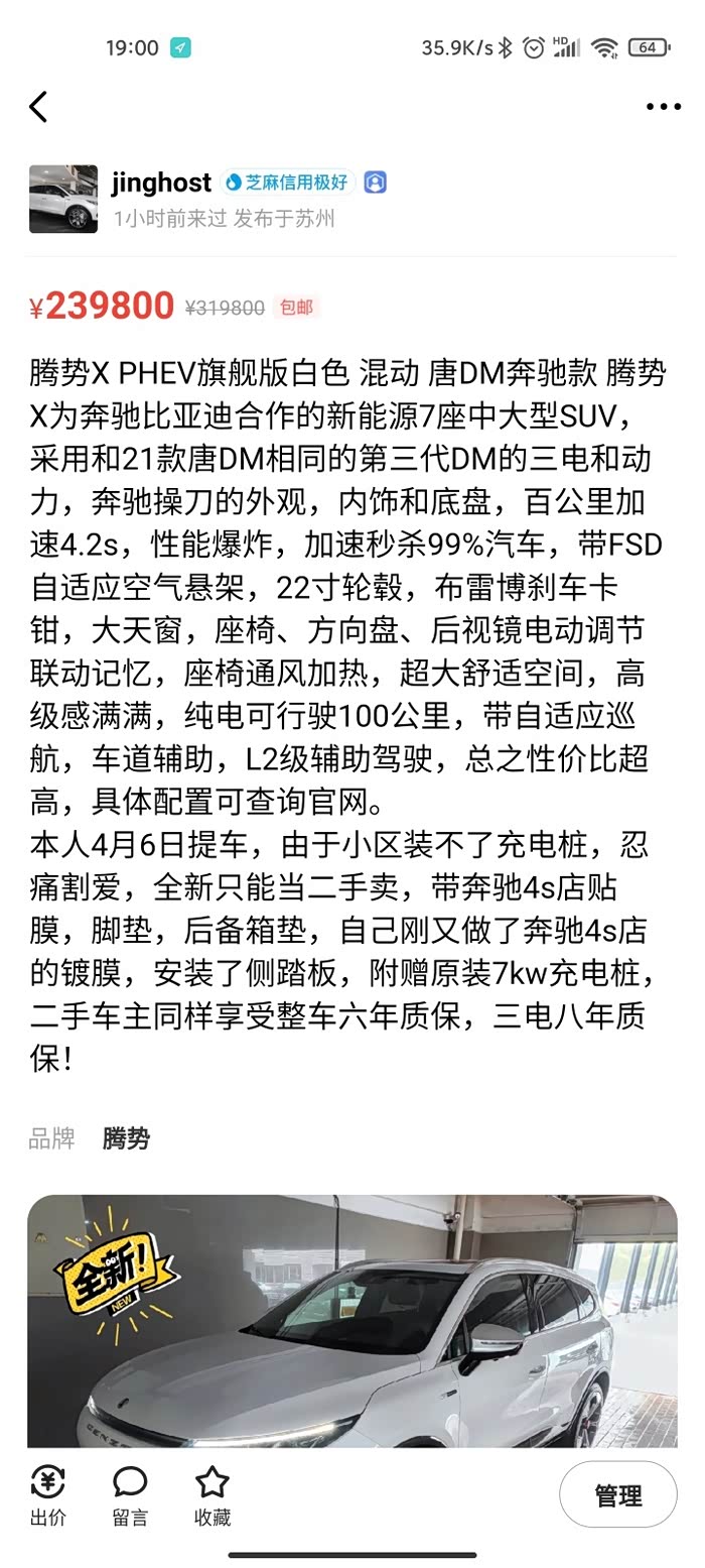 混动旗舰白,因装不了充电桩,忍痛割爱