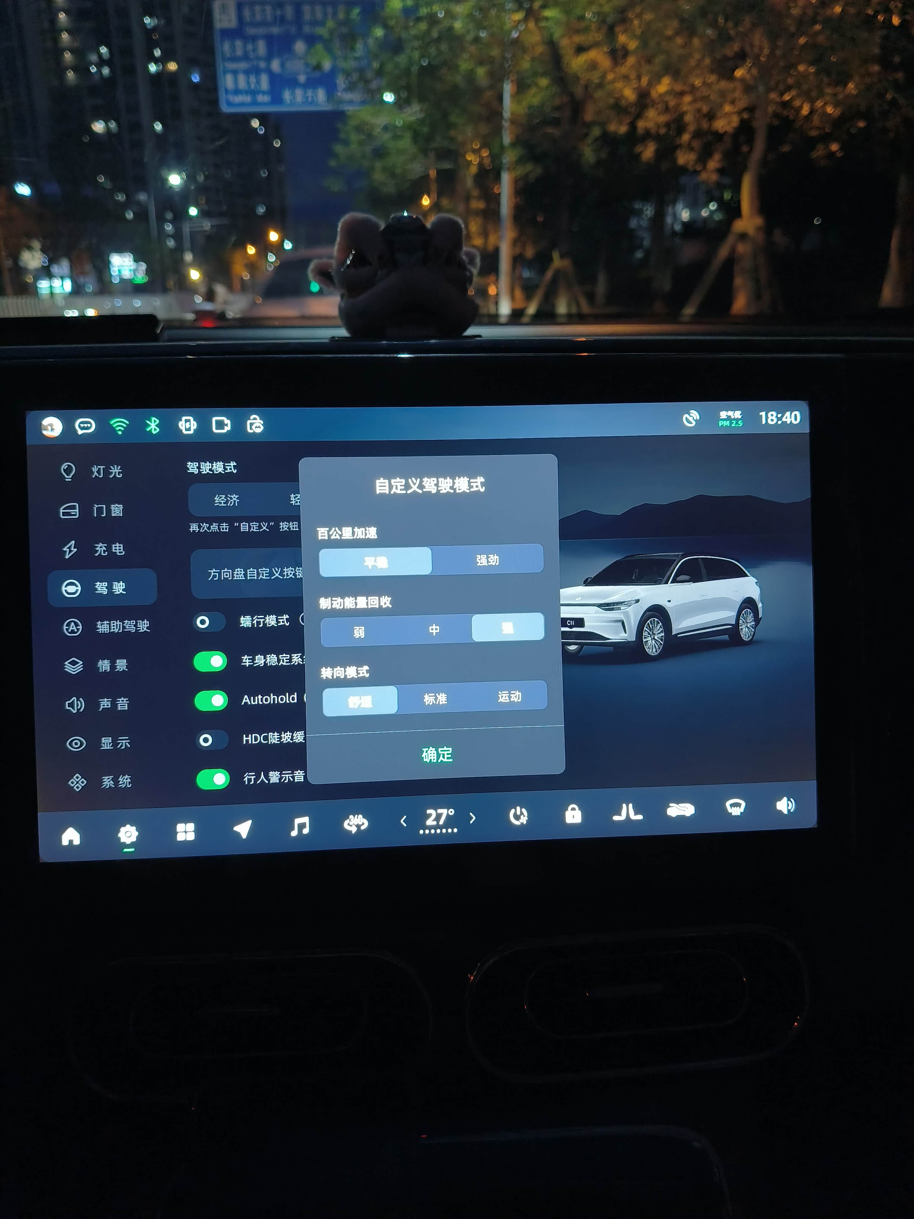 🚖行驶设置自定义模式,平稳起步,舒适转向加强动能回收,胎压维持在2.5Bar左右😋。行驶全程导航加听歌,空调制冷27°内循环一档风,全时开启座椅通风(自己增配😍)。