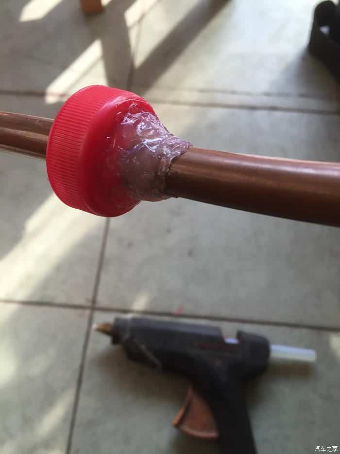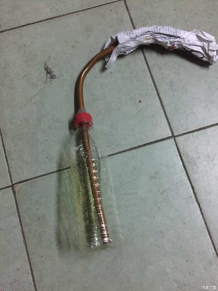 最后,曝光一下我自制的加油壶,铜管插到瓶底,这样可以瓶子立着加油了,前提是盖子要密封,否则你懂的