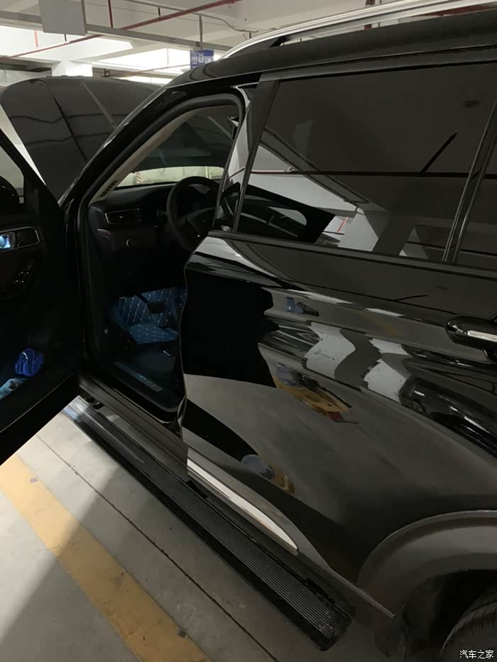到提车时出了一点小插曲,销售说只有大半年前出厂的现车是佩托湖蓝外观和金砂棕內饰,如果黑外內紫,倒是有2个月前出厂的现车,当时考虑了一下,決定买黑外內紫,这么大尺寸的车,黑色显得大气,紫色內饰也比较耐看。约好九天后,验车、上牌、贴膜,安裝电动踏板,结果花了一整天终于全部搞定,只到天黑后才开着大探顺利返回家中。