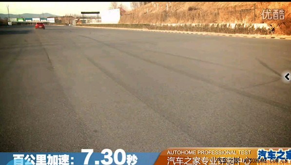 由于和某car的测试车轮胎差2mm,所以0-100加速有所差异,最终成绩是7.3S。 获益于225mm的宽胎,100-0刹车距离为37.6米。