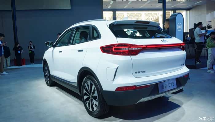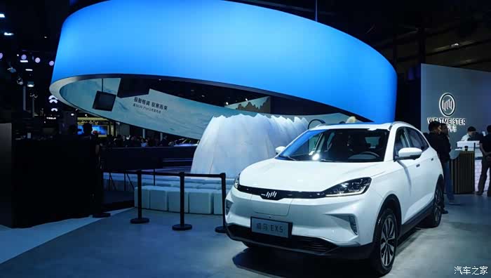 展台旁边还有威马EX5的展车,威马EX5的灯光设计和威马EX6PLUS的差距还是挺明显的,EX6 PLUS的雾灯设计看上去更加时尚一点