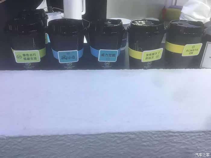 展台还可以领取免费的饮料,杯子上还有各种个性标签
