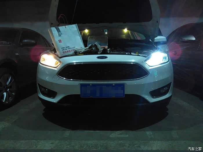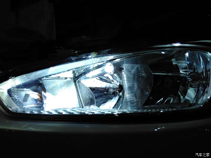 都换好效果,照片拍不出来真实效果,其实看着就是两个白色亮点,不是一片。除了盏数太少以外,单个而言已达到日行灯效果。