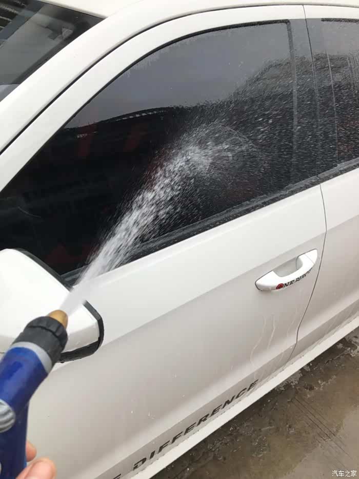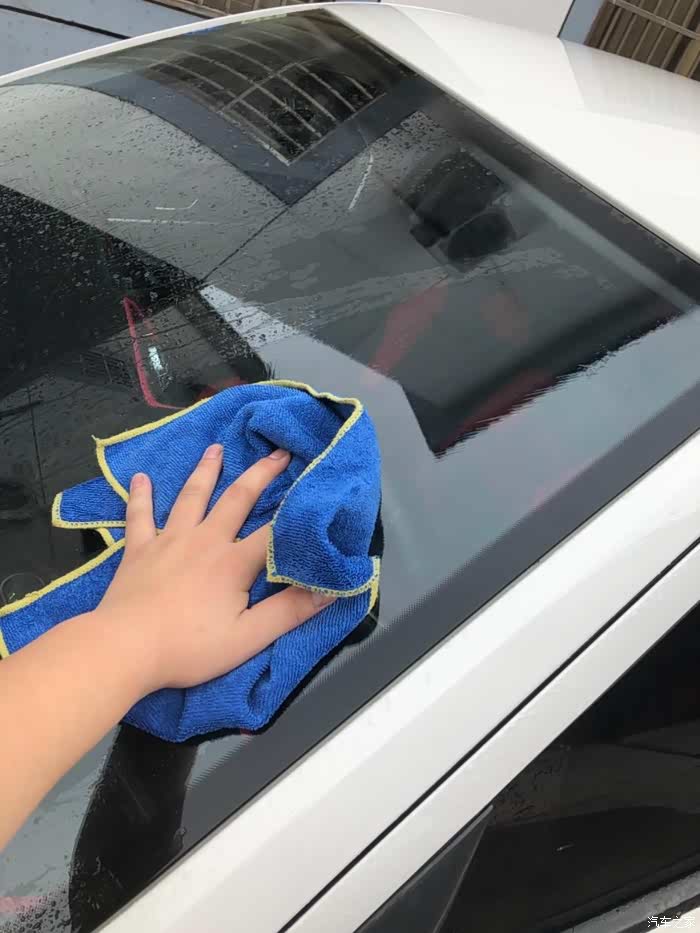 玻璃都洗一个遍了怎么能少了倒车镜,顺便一起清洗了
