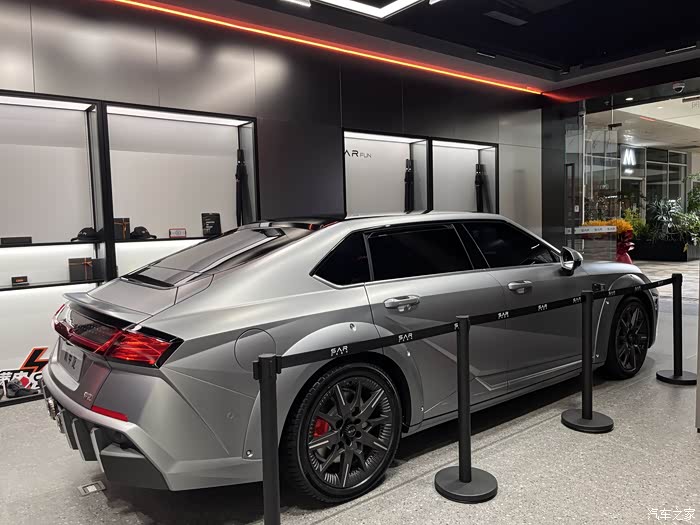 虽然车尾没有我在网上看到的限量款有固定尾翼,但是作为量产版搭配了可升降自动尾翼,让整个车看起来更加有科技感,同时一体式的尾灯听销售顾问介绍还能有表情等功能,在驾驶的过程中可以做各种表情,我听完这个已经可以脑补到后车司机什么表情了,但是很不幸目前店内的车是一台试装车,不能进去进行体验。其实我一直好奇车尾那俩排气管是做什么的,作为新能源车,排气管这种东西好像并没有什么用,其实那是两个尾灯同时也是车外的声浪模拟系统,能够让用户在驾驶新能源车的同时感受到燃油车引擎轰鸣的快感。