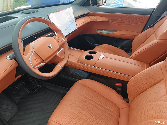 深蓝S07的内饰除了图中的热浪橙之外,还有星野绿和耀影黑两种内饰颜色可供选择。