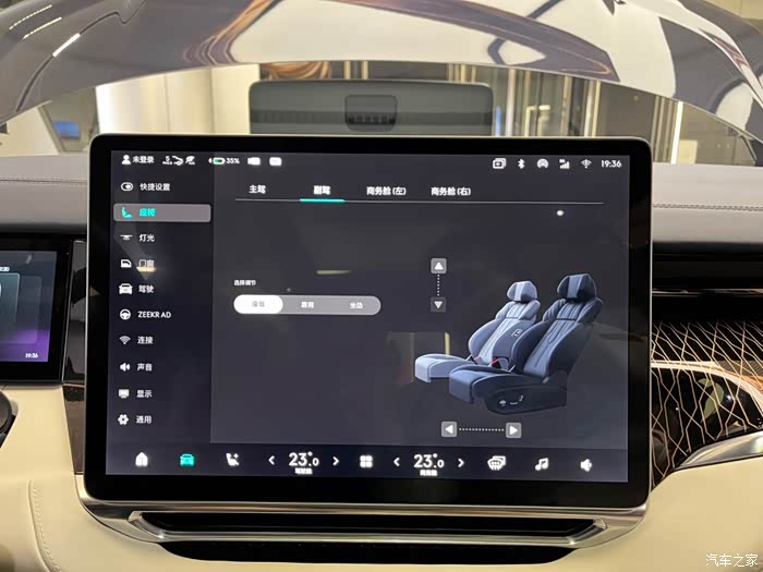 在车机上浏览的上发现一个有意思的点,主驾、第二排商务舱作为都有按摩、通风、加热等功能,副驾就啥功能都没有;这要是一家人出游,这副驾就有点郁闷了。
